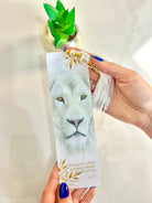 Marcador de pagina plastificado com estampa leão branco com régua medidora 📏