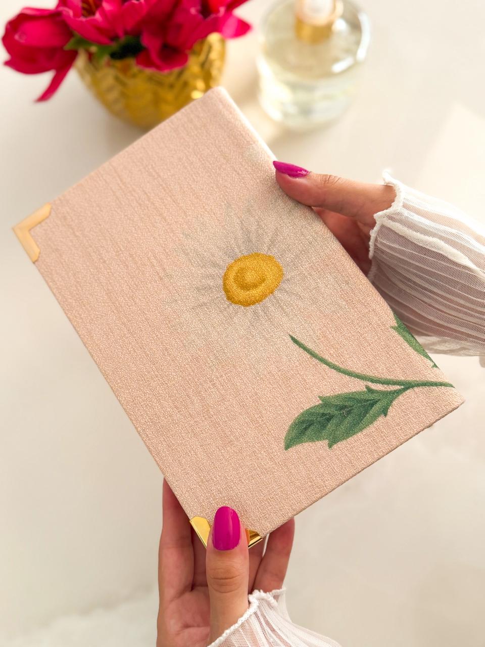 Combo Bíblia em Linho Margaridas, finalizado com cantoneiras douradas, fitinha de cetim e pingente de Cruz combinando com a bíblia!
