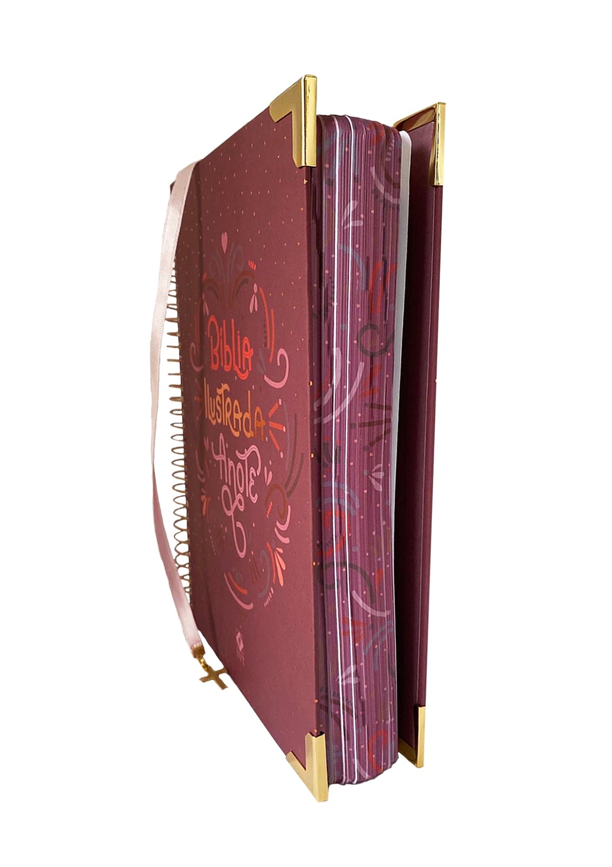 * Na parte final da Bíblia tem um caderno de registro com plano de leitura, espaço para anotações, desenhos para colorir, tutorial de como fazer desenhos e lettering.