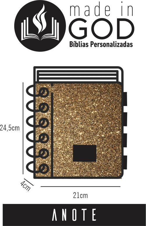 Com a Bíblia Ilustrada Anote, a leitura da Palavra de Deus se torna uma agradável experiência de fé, beleza e inspiração. Nos espaços laterais para anotações de cada página, o leitor contempla lindas ilustrações com base nos textos bíblicos e tem à disposição espaço para registrar suas percepções, orações e anotações – é como ter a experiência de se tornar um autor do texto sagrado. A Bíblia Ilustrada Anote traz a Nova Versão Transformadora (NVT) das Sagradas Escrituras, uma tradução contemporânea que facilita o entendimento e preserva, intocado, o eterno conteúdo inspirado pelo Senhor.