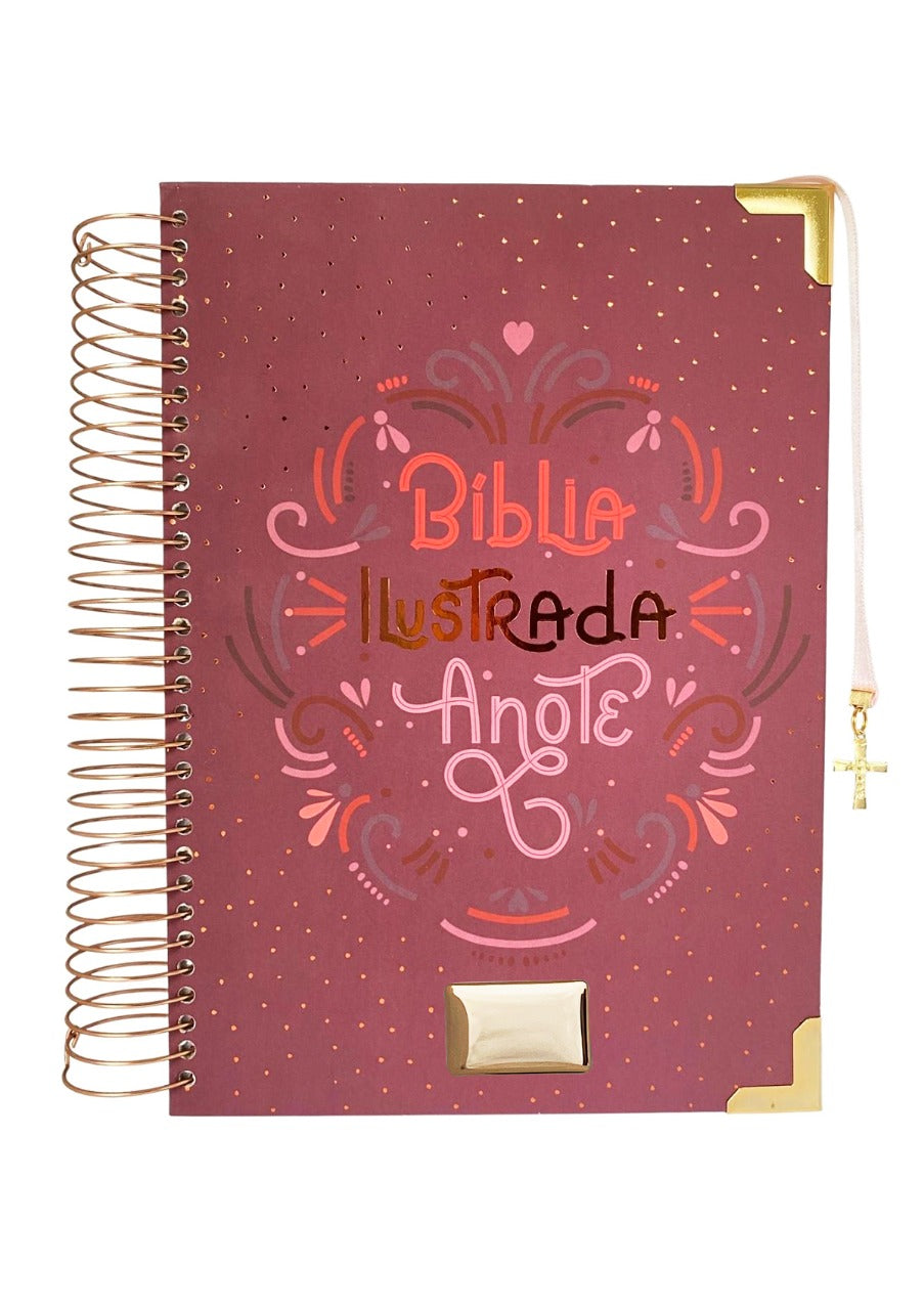 Bíblia em espiral ANOTE ilustrada com espaço para anotações.