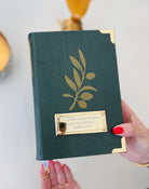 Combo Bíblia Courino Oliva com Oliveira Dourada gravada + Cartela de índices Dourada+ Placa Grande Dourada
