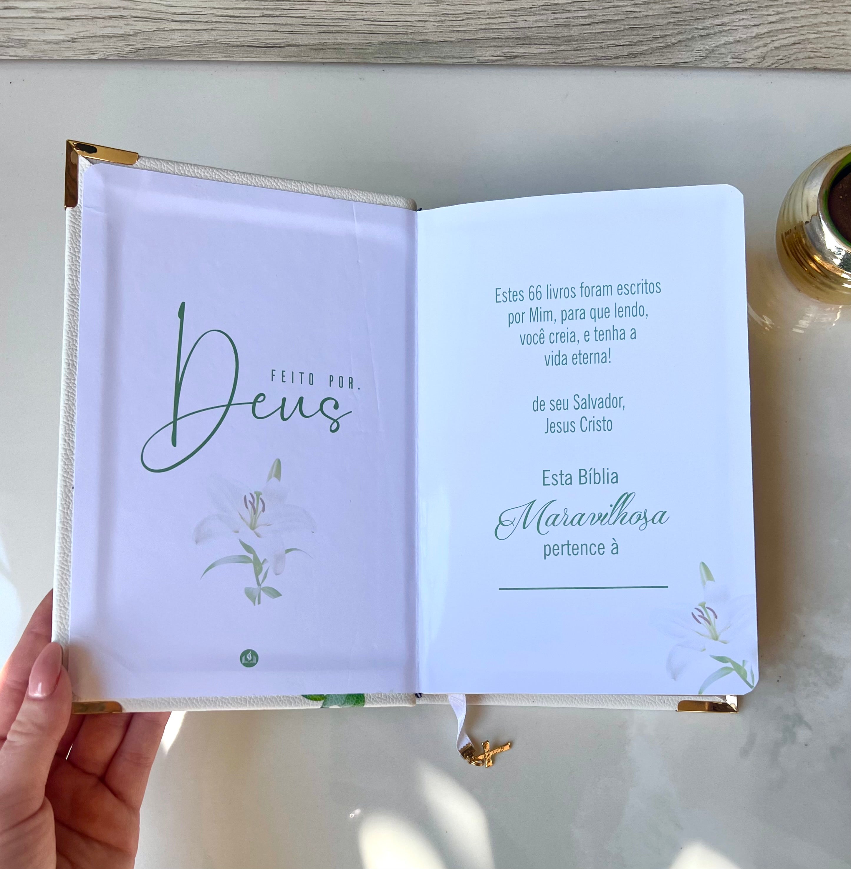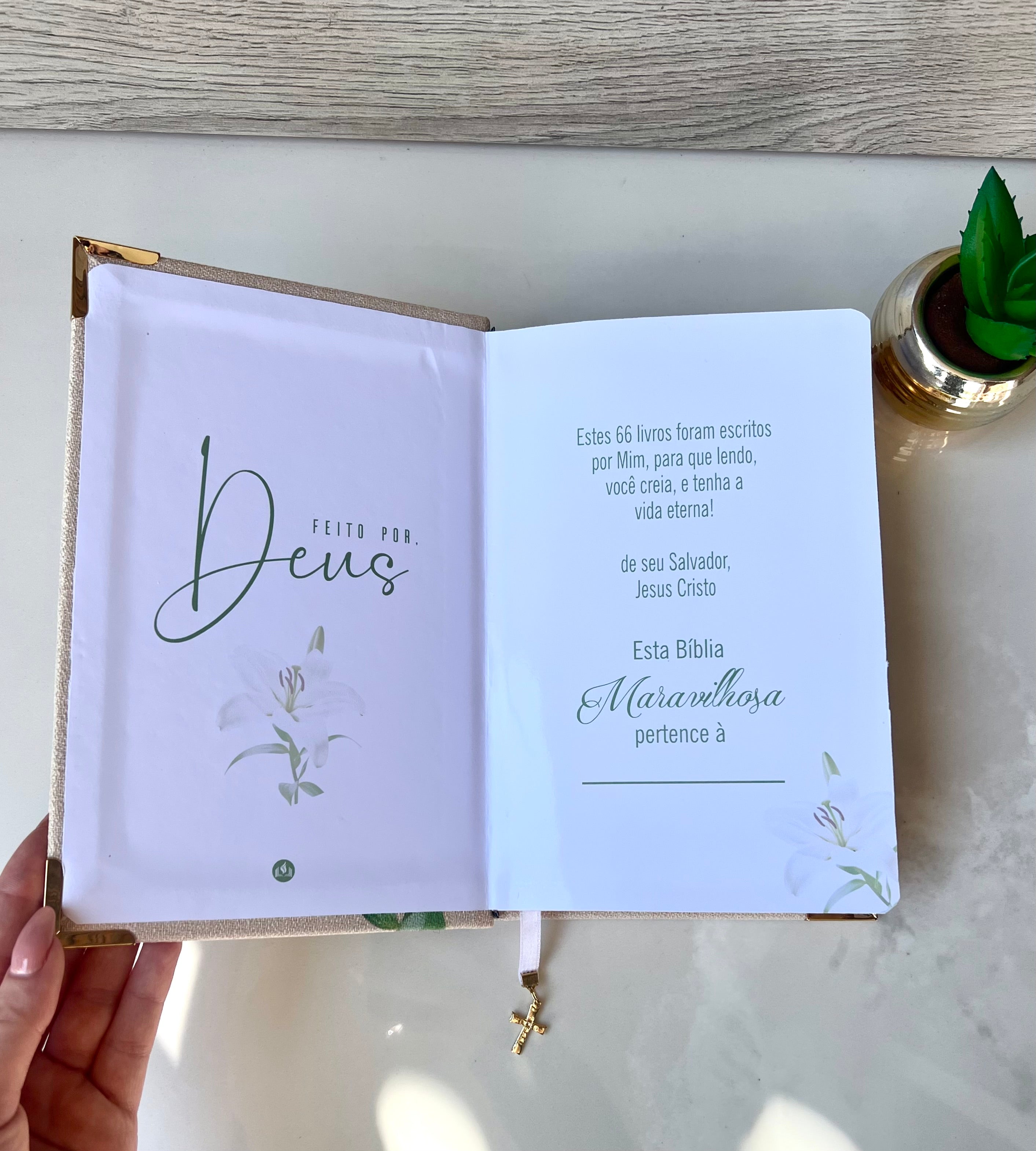 Combo Bíblia Média Lírio em Linho + placa pequena + Cartela de índice