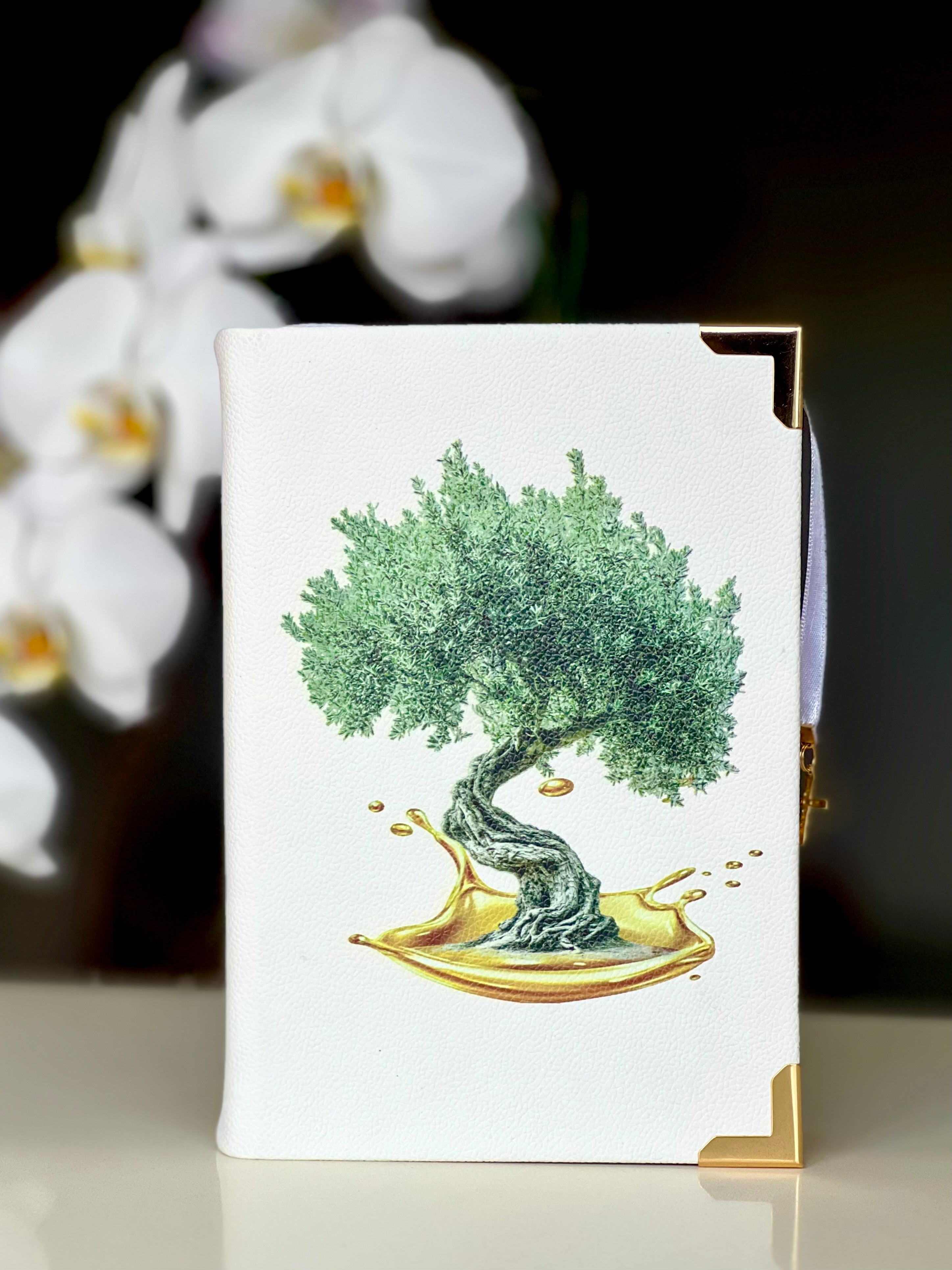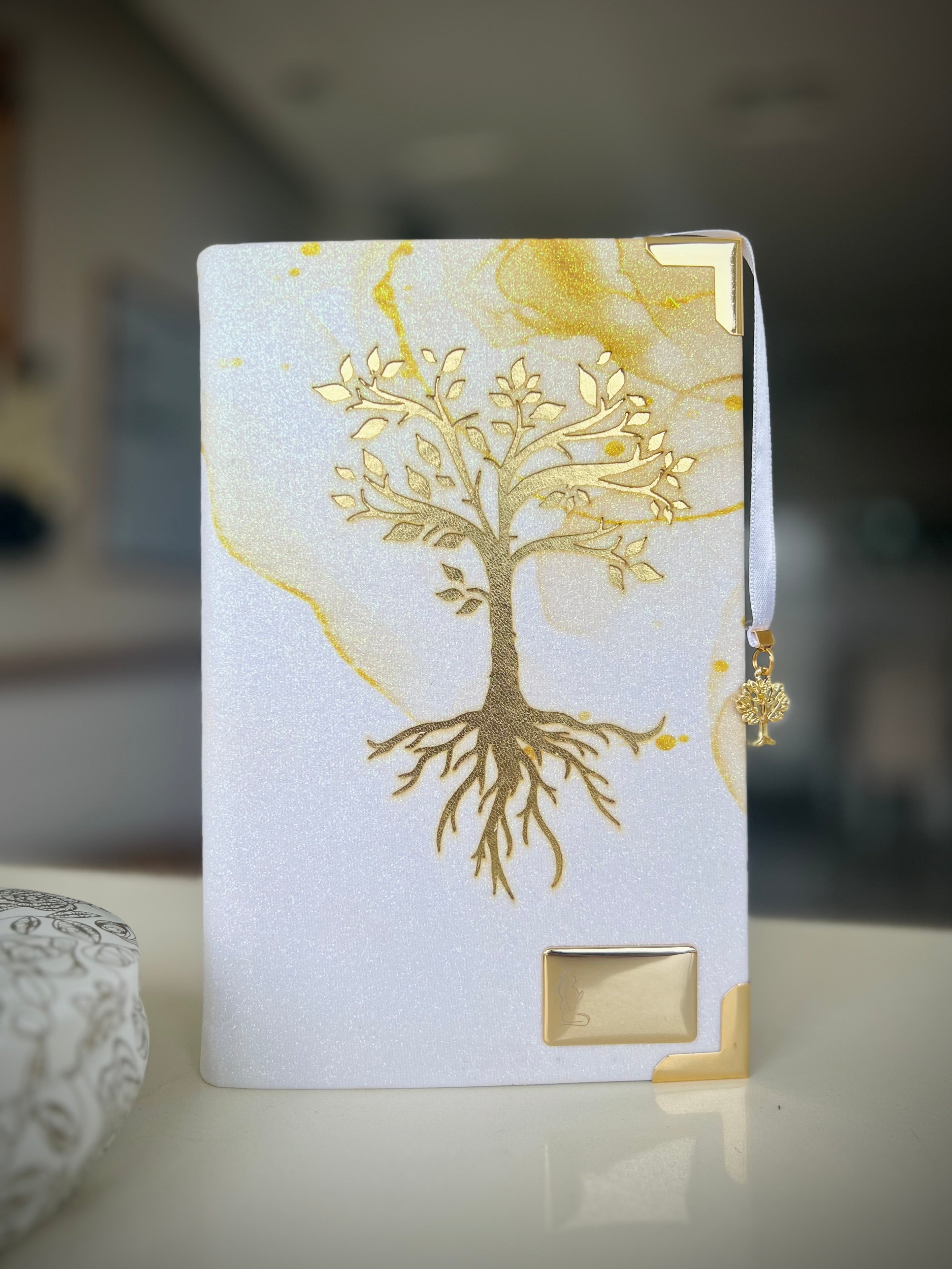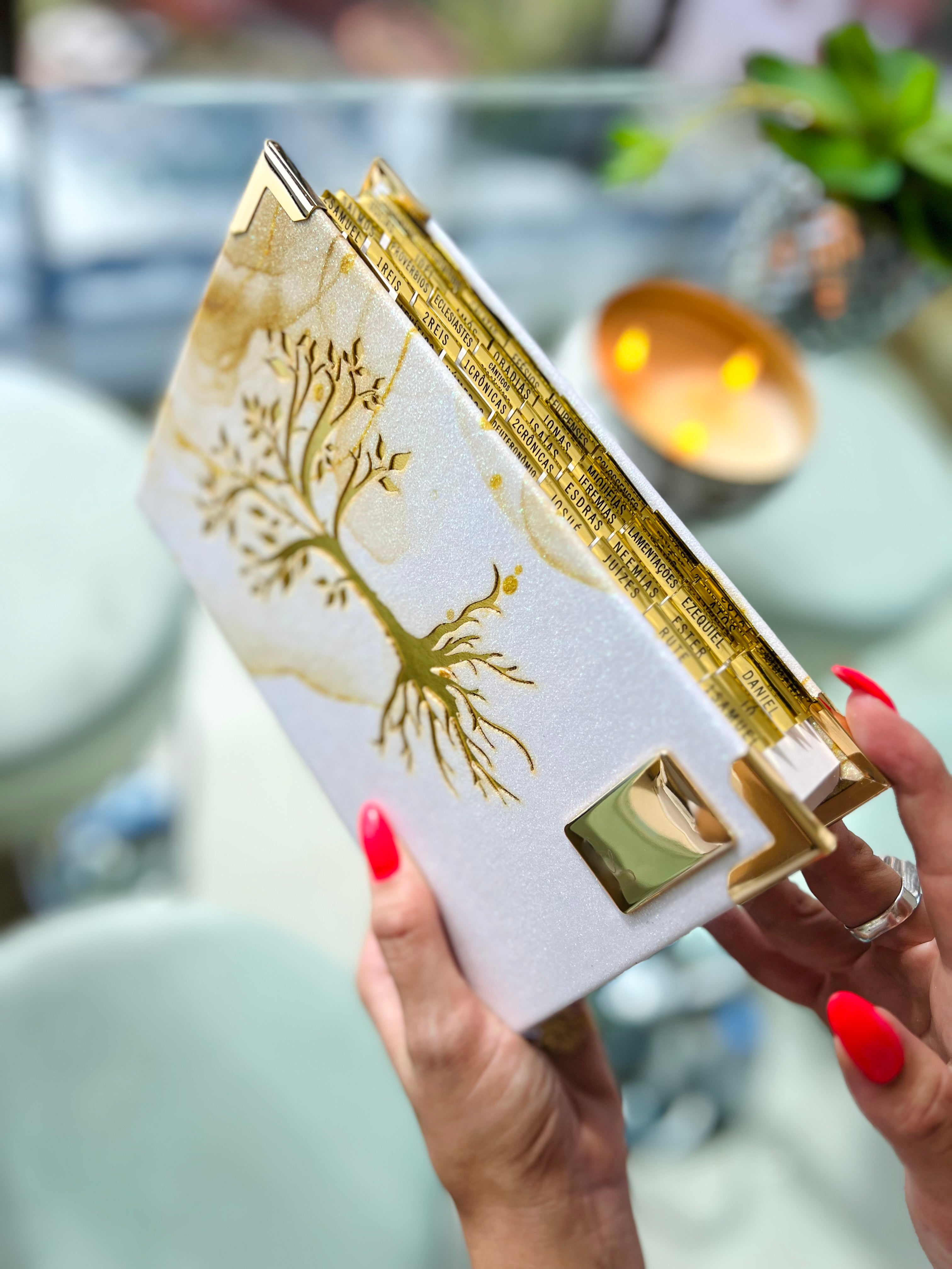 Combo Bíblia Árvore da Vida Glitter Branco com Dourado + Placa + Índice