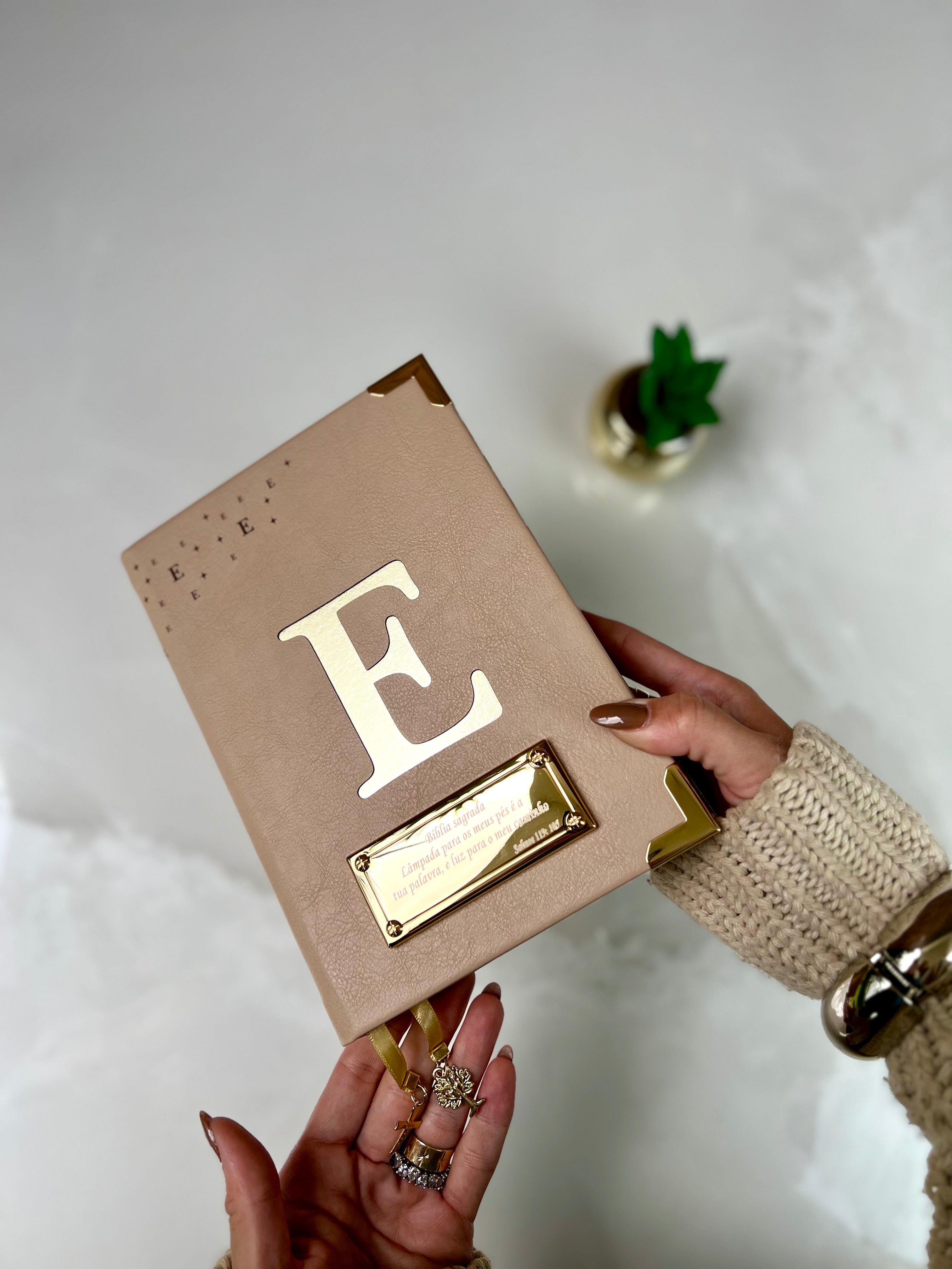Combo Bíblia Courino Nude com a Inicial - com estrelinhas e Iniciais