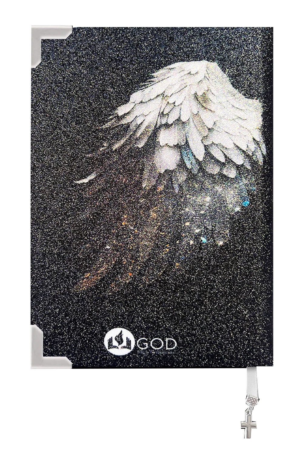 COMBO Bíblia Glitter Preto SANTO ESPÍRITO asas fechadas + placa pequena e pingente de cruz