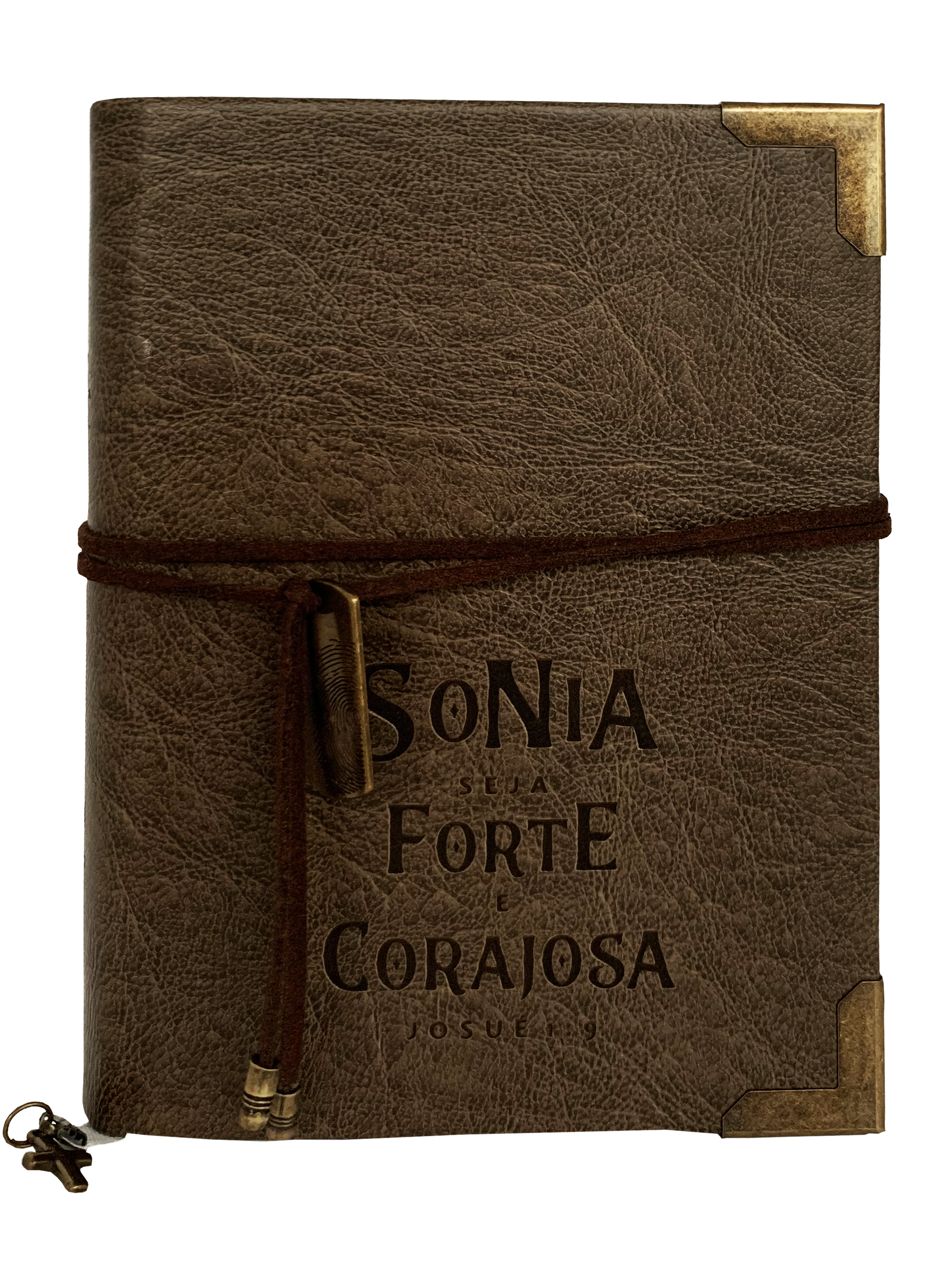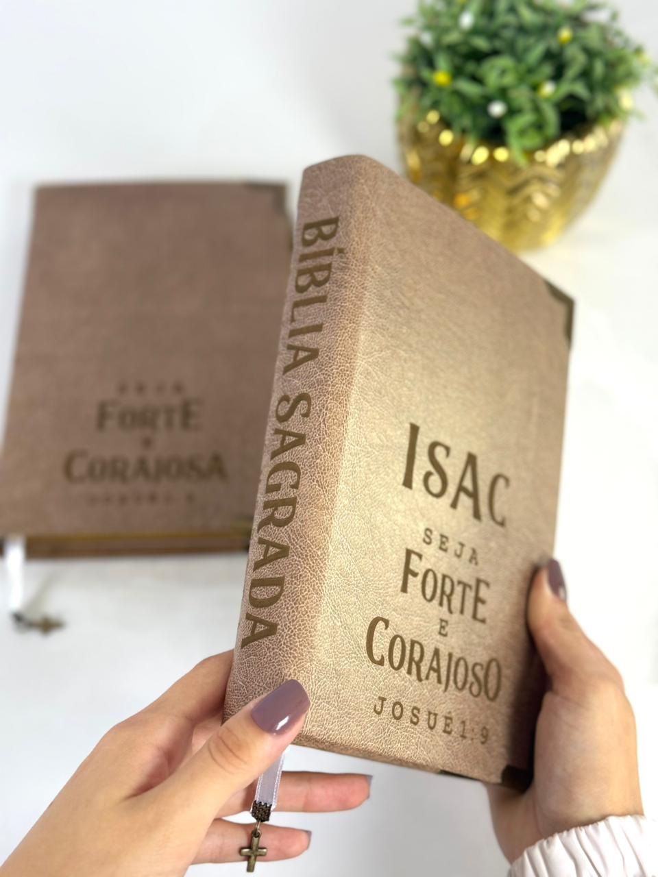 Bíblia Personalizada Josué 1:9 Marrom Envelhecido Modelo Masculino