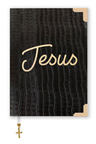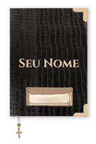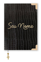 Bíblia personalizada com courino "couro fake" estampado croco em relevo quadrado, finalizado com cantoneiras banhadas a ouro, fitinha de cetim e pingente de cruz combinando com a bíblia!