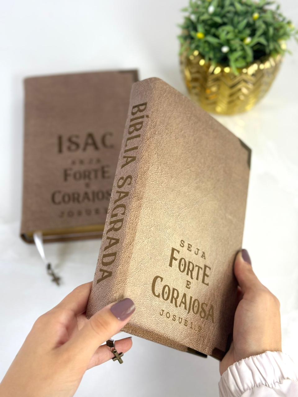 Bíblia Personalizada Josué 1:9 Marrom Envelhecido Modelo feminino