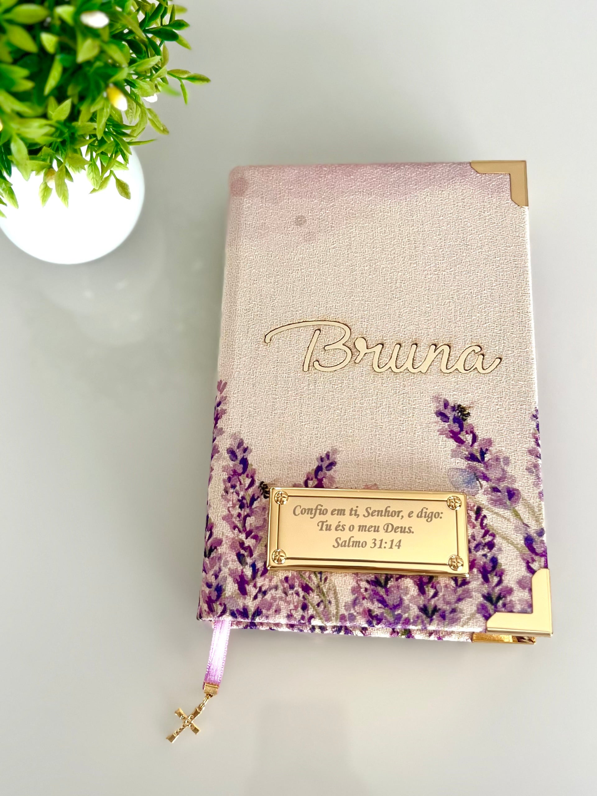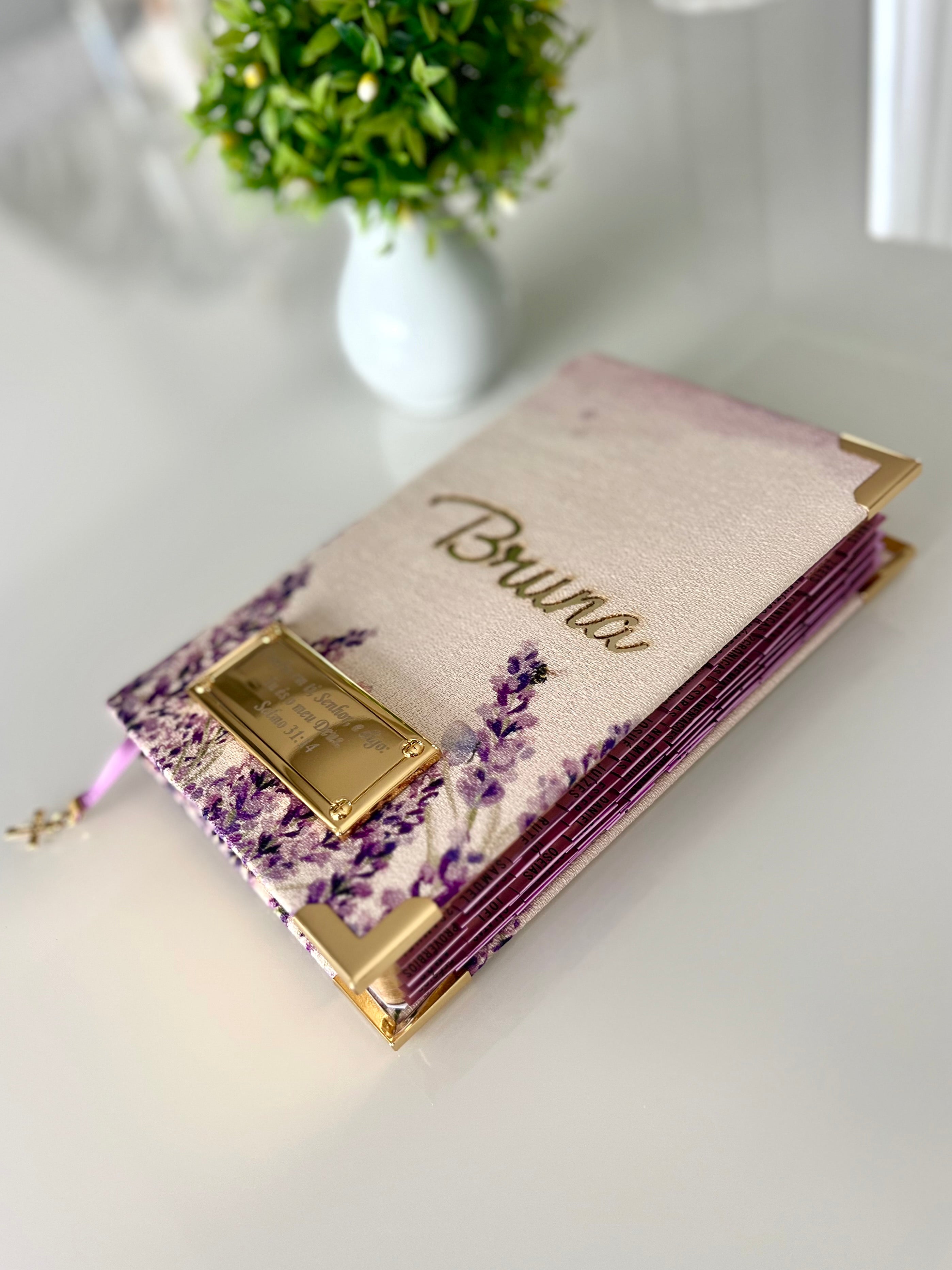 Combo Bíblia Linho Lavandas + placa grande + cartela de índice