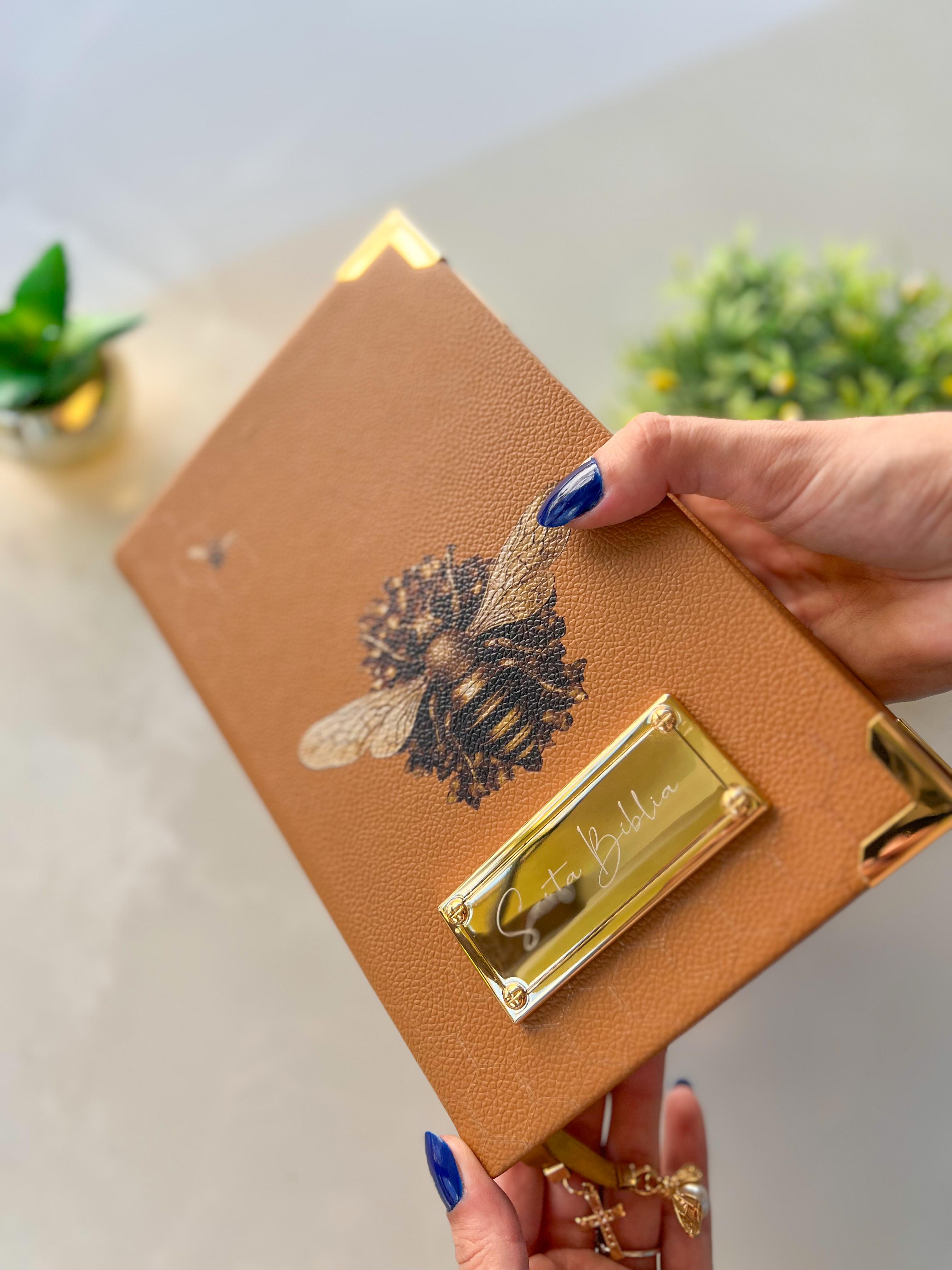 Black Bíblia Em Espanhol Courino Caramelo Abelha UV