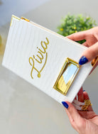 Bíblia Courino Croco Branco com Nome Lívia vazado dourado- Versão NAA - Tamanho Médio - Letra Gigante