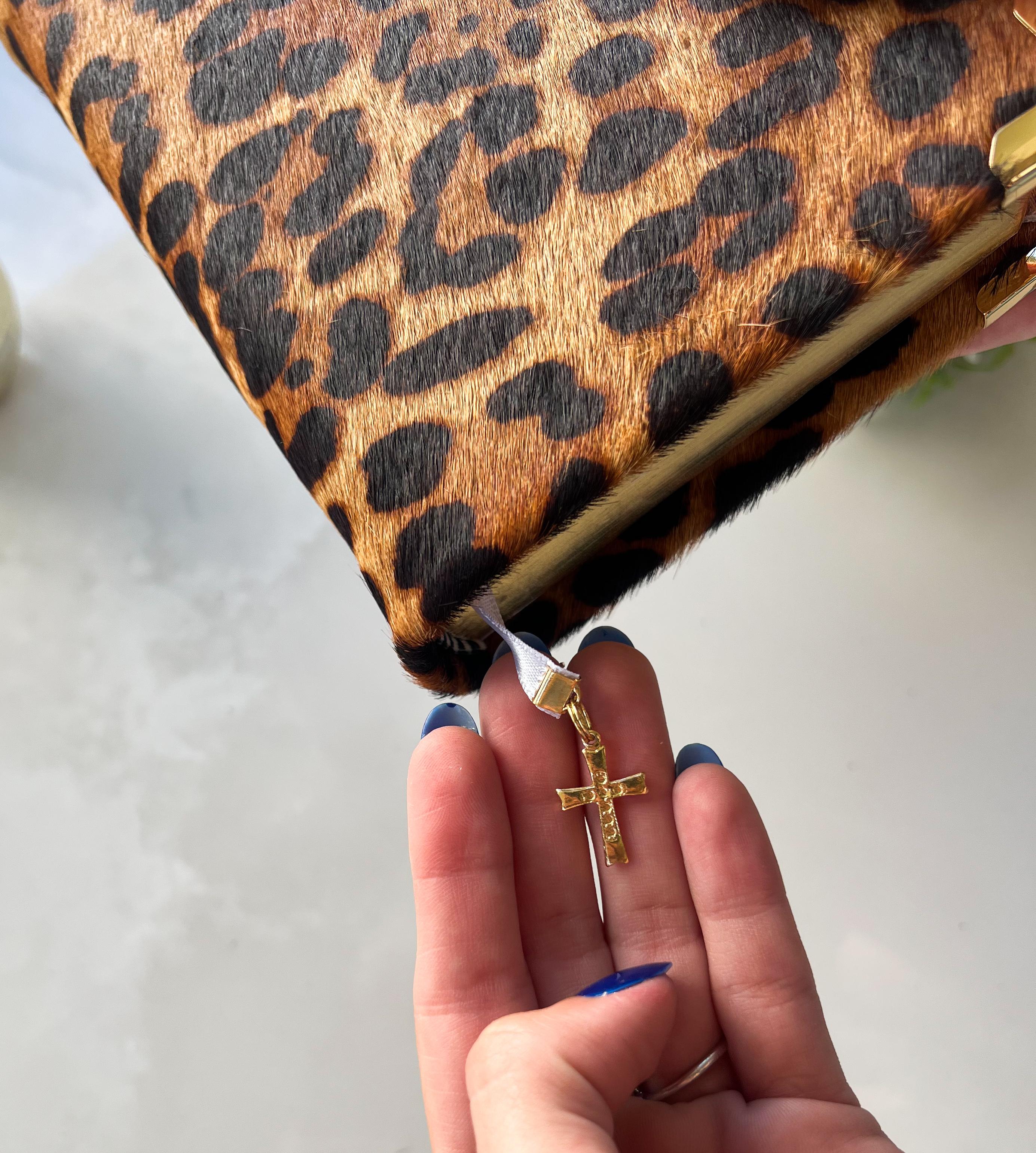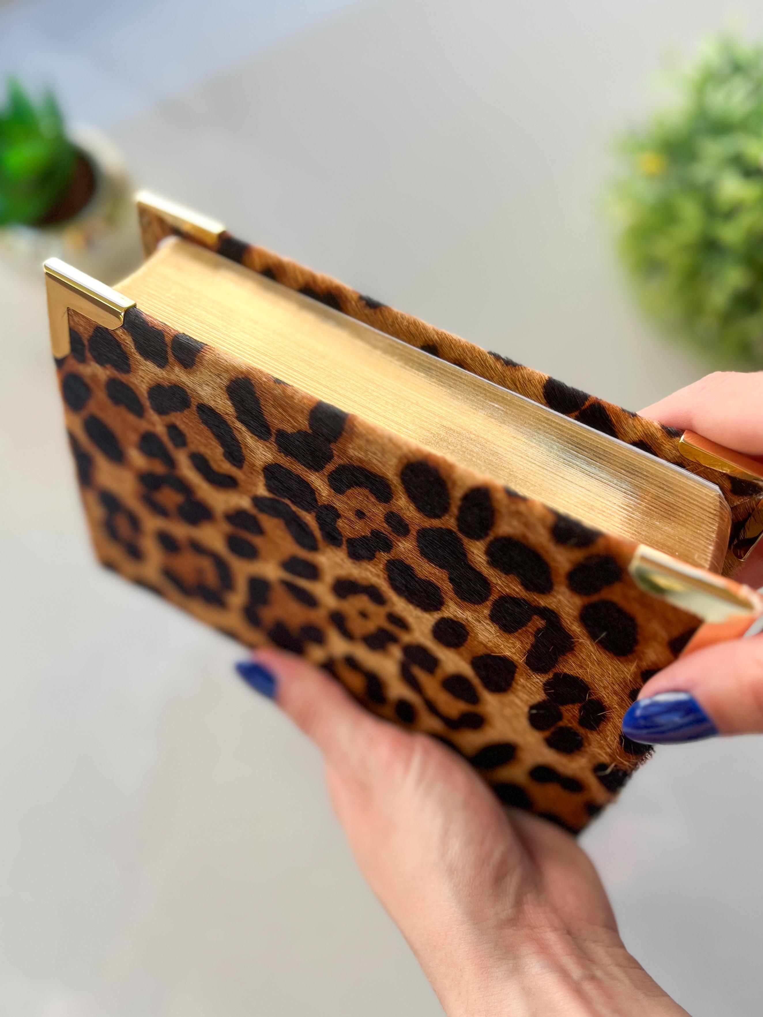 (PRONTA ENTREGA BLACK FRIDAY) Bíblia Couro Animal Print - Versão ARC - Tamanho Pequeno - Letra GrandeAcompanha:-Cantoneiras e pingente de cruz combinando com a Bíblia.