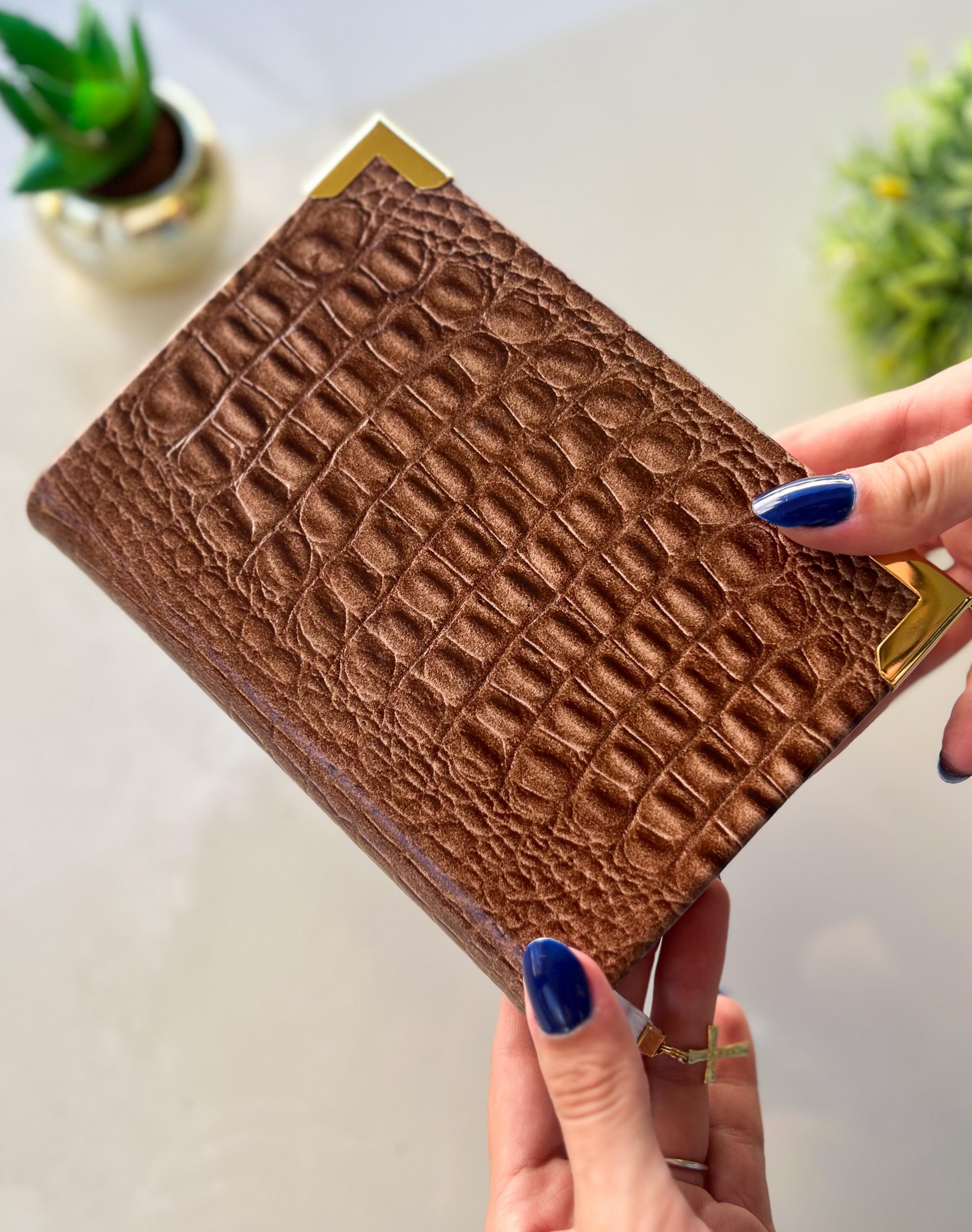 Bíblia Couro Croco Marrom- Versão NAA- Tamanho Mini - Letra Pequena