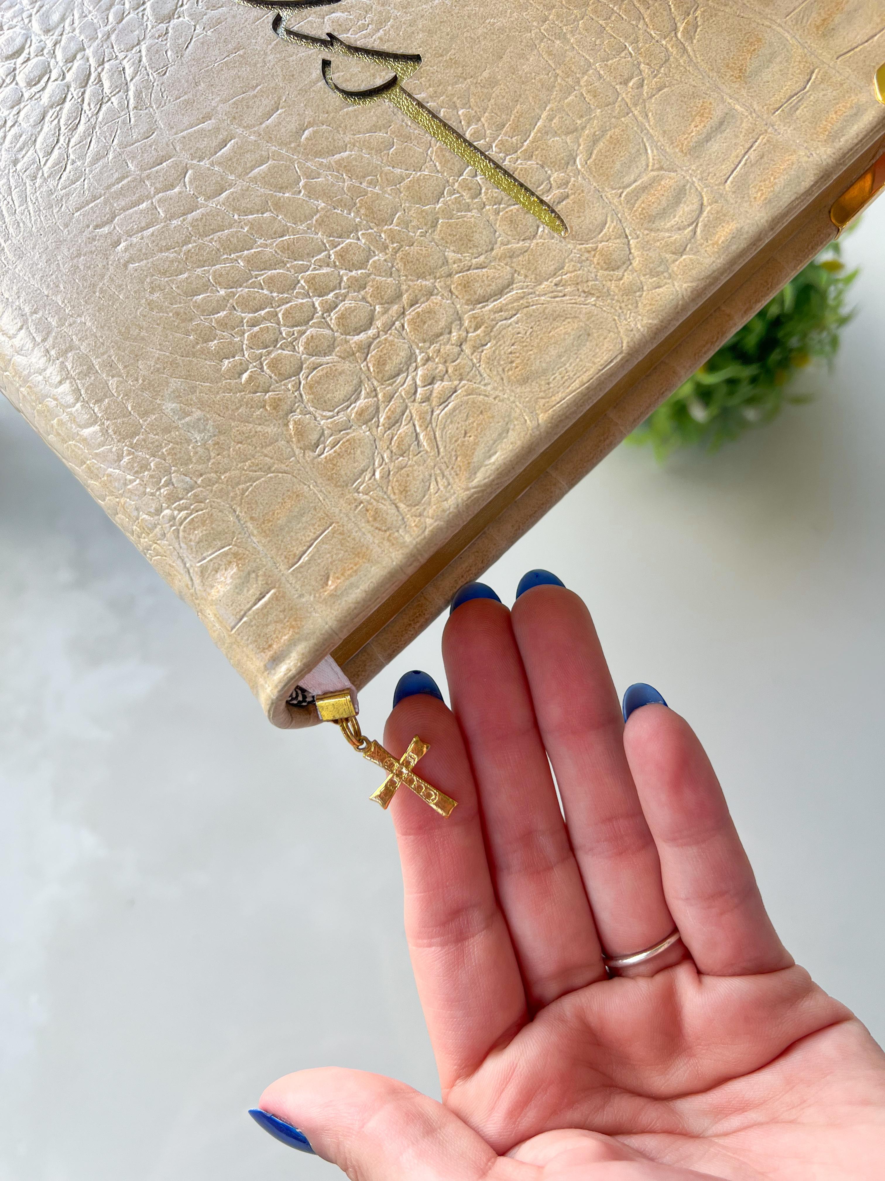 -Cantoneiras e pingente de cruz combinando com a Bíblia.