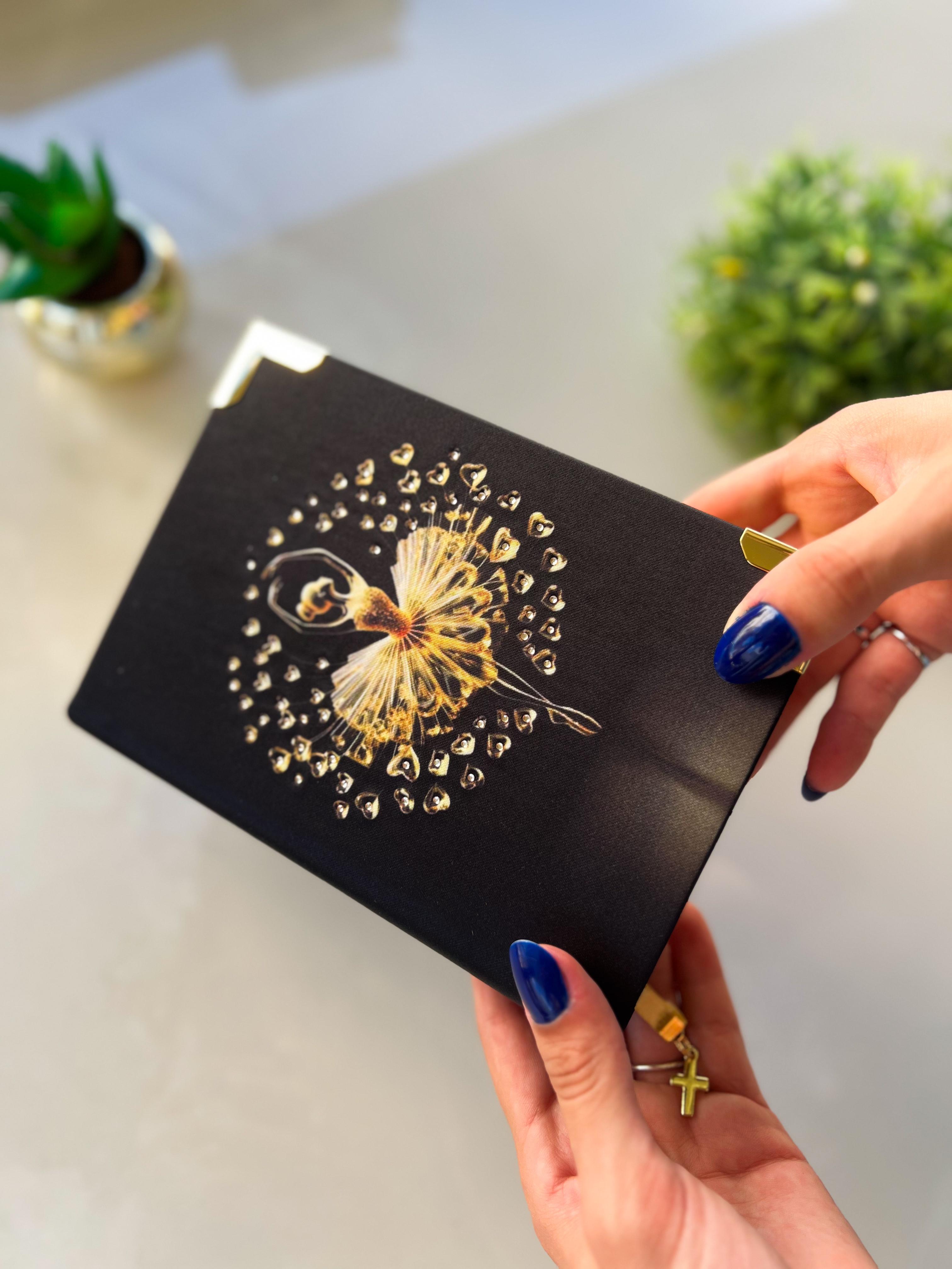 Bíblia em Cetim Preto Bailarina com strass- Versão NTLH - Tamanho Pequeno - Letra Grande