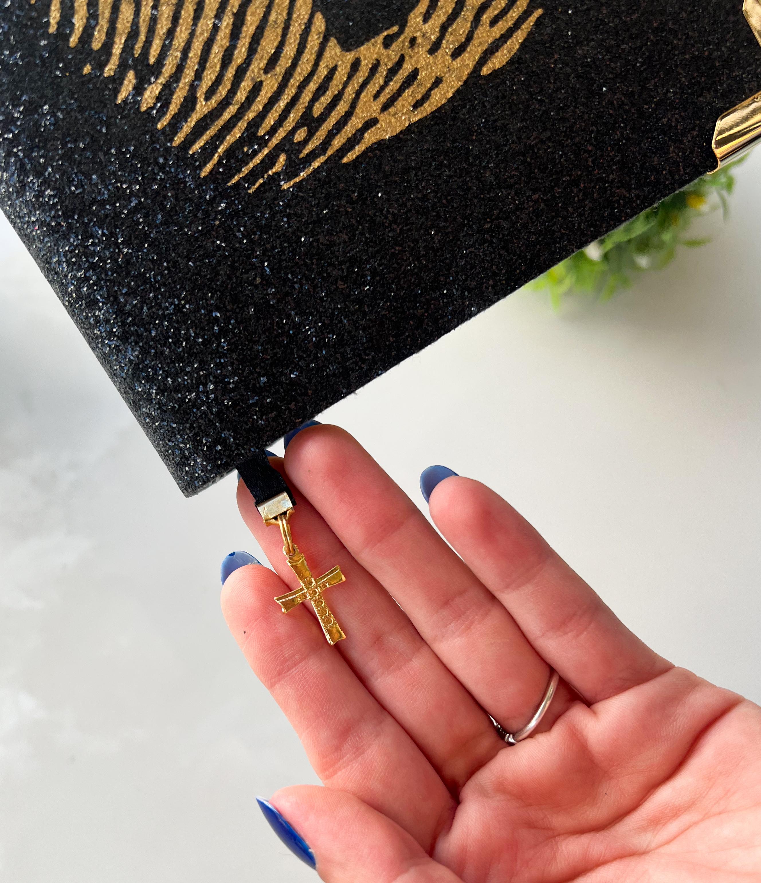 -Cantoneiras e pingente de cruz combinando com a Bíblia.