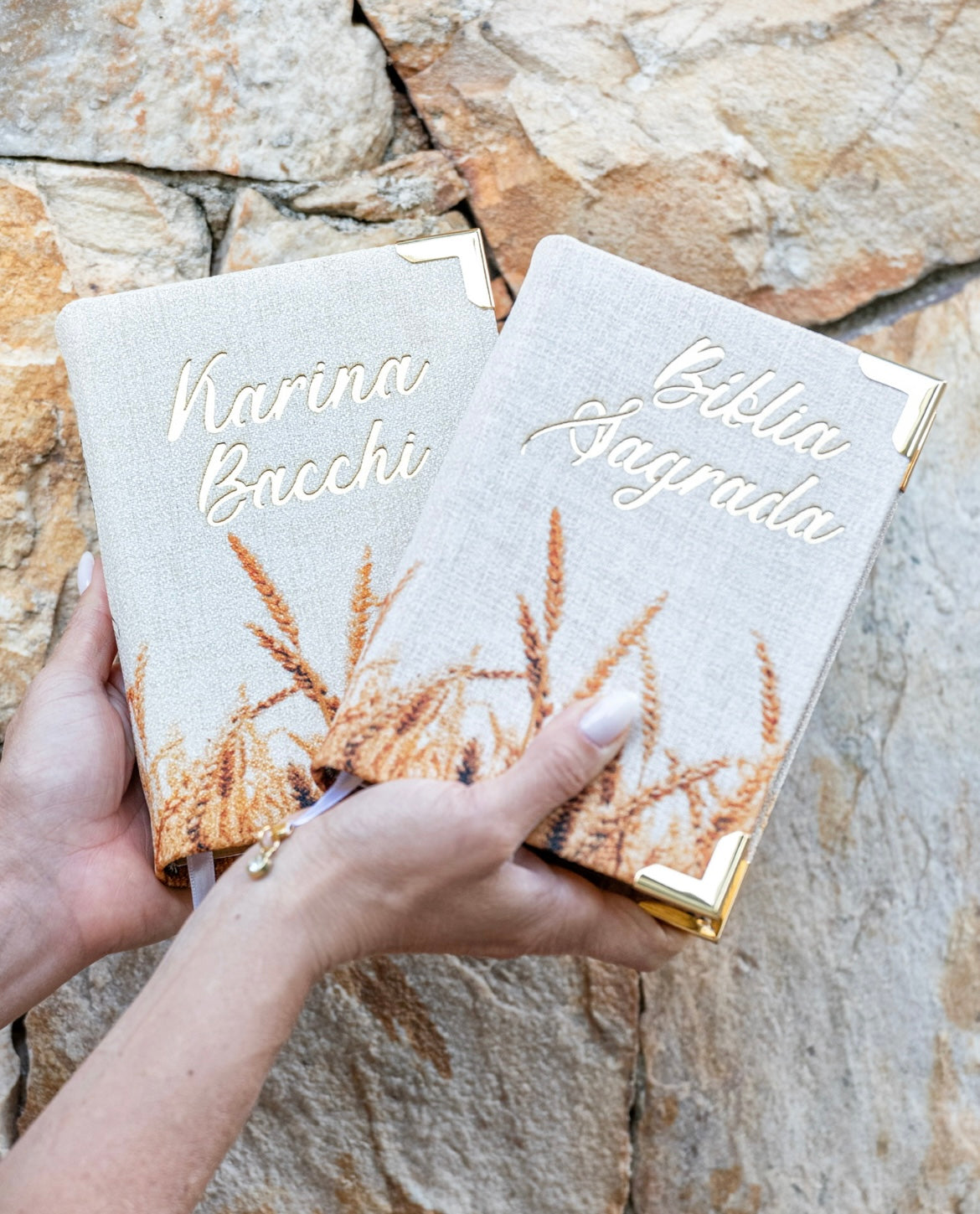 Bíblia personalizada “Oliveira + Forte“ by Karina Bacchi. Bíblia toda delicada com Trigo em tom laranja